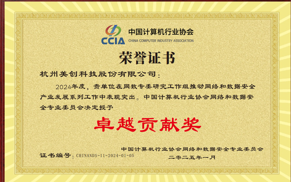 美創(chuàng)科技獲中國計(jì)算機(jī)行業(yè)協(xié)會(huì)網(wǎng)絡(luò)和數(shù)據(jù)安全專業(yè)委員會(huì)“卓越貢獻(xiàn)獎(jiǎng)”